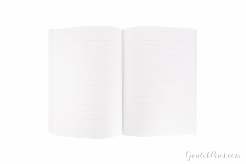 This A5-sized notebook features 96 sheets (192 pages) of white super-smooth lined paper and reinforced stitched binding. Each sheet has 24 lines, spaced 7mm apart. Created for Apica’s 25th anniversary, the Premium C.D. series features Apica’s ultra-smooth “A.Silky 865 Premium” paper and silver embossed accents on the dark blue cover.