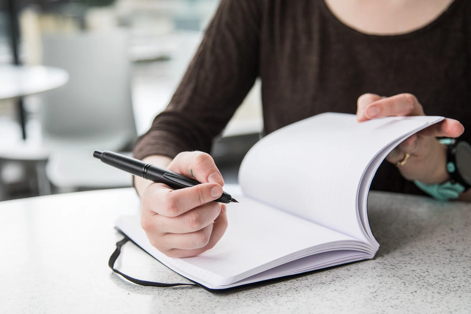 A perfect satin finish for maximum smoothness in writing. This A5-sized black notebook features 96 sheets (192 pages) of white 90g Clairefontaine ruled paper, with cloth binding matching the cover. Lines are spaced 8mm apart. An elastic strap helps to keep your notebook closed when not in use.