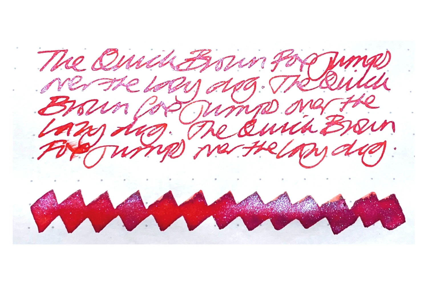 Due to the amount of particulate in this ink used to achieve the sparking look, you may experience restricted ink flow in some of your pens. We recommend shaking the ink thoroughly before filling and gently rolling the pen in your hands often to keep the shimmer effect consistent. This will also help prevent clogging. You will also want to be diligent about cleaning and maintaining your pen when using this ink.