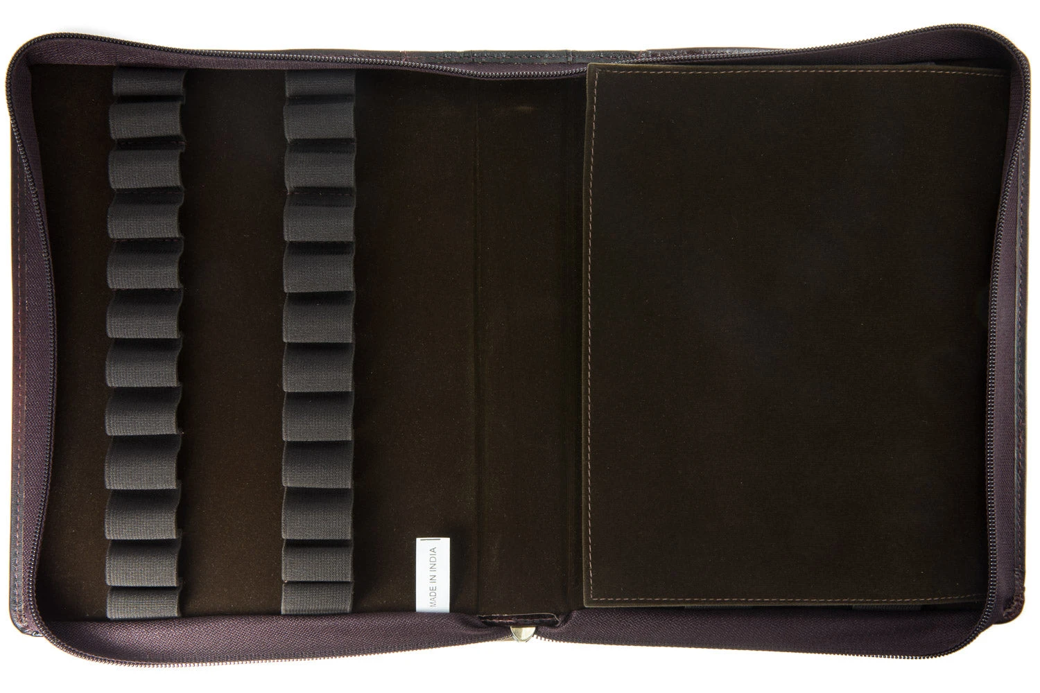 This burgundy leather Girologio zippered pen case has a soft velvet interior and holds up to 24 pens. Made from high quality, ecologically tanned leather, Girologio pen cases are an excellent choice for protecting your writing instruments. These leather cases are soft and supple while simultaneously being tough and durable.