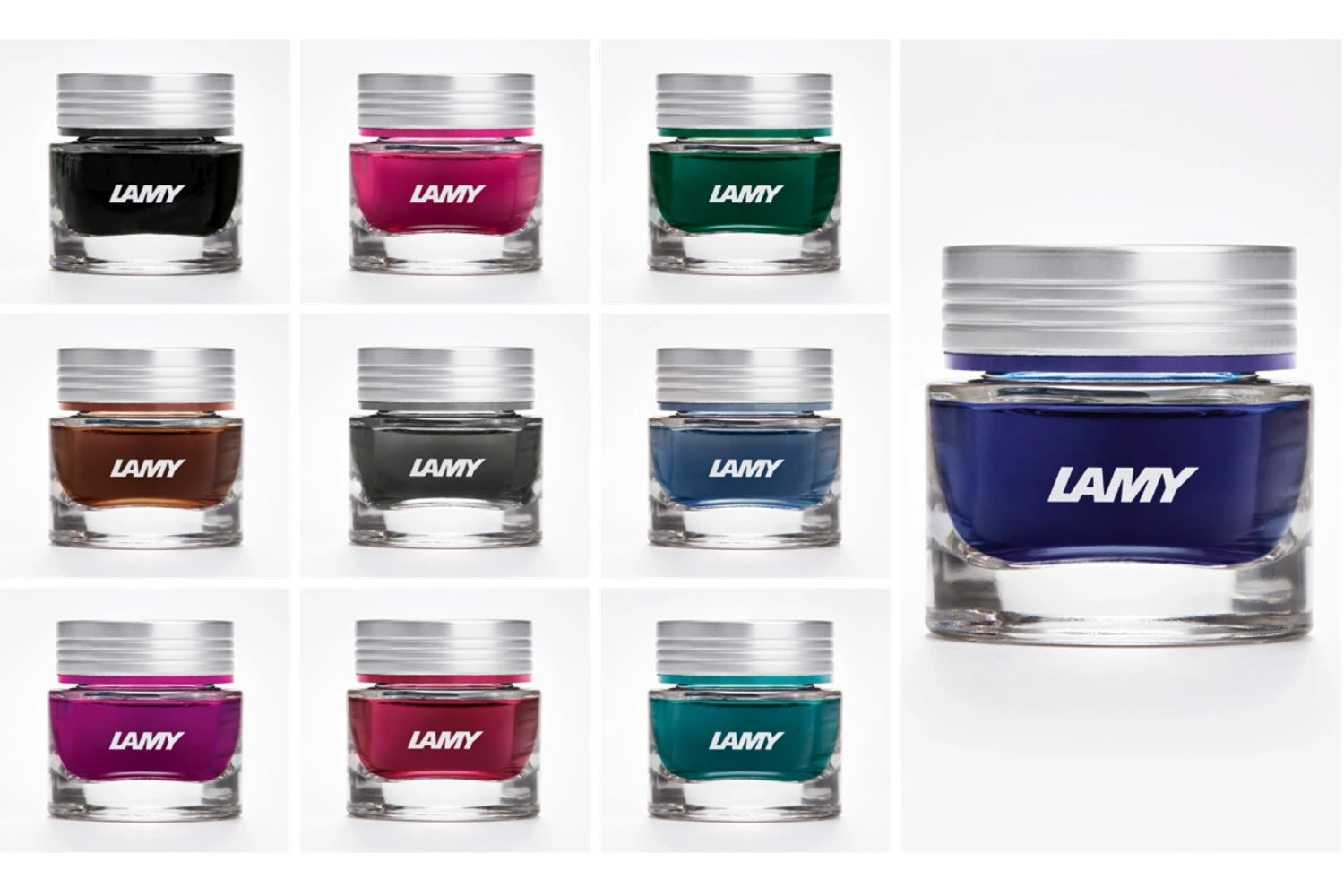 LAMY has complemented its portfolio with crystal ink – a series of extremely attractive color inks. Ten brilliant tints expand the fascinating art of writing with the fountain pen into a whole new dimension. The carefully composed ink colors highlight the individual character of every piece of writing. At the same time, they invite one to be creative with the medium of color and set design accents in a completely new form. Of course, all of LAMY’s crystal inks are made in Germany. They are nuanced advancements of the standard colors yet also independent and unique, each with a subtly appealing range. LAMY crystal inks deliver exceptional color intensity and product quality.
