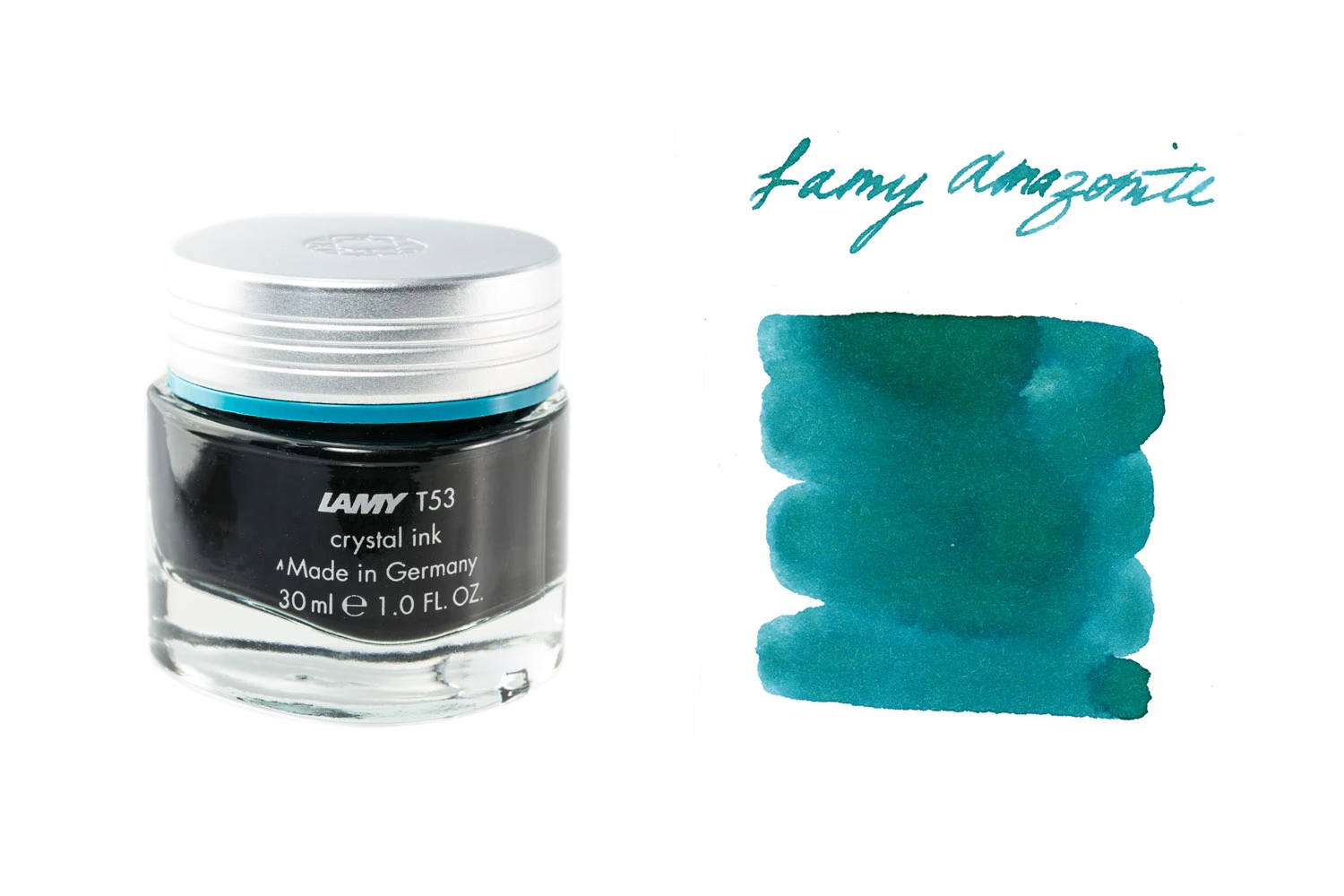 This 30ml bottle of LAMY amazonite turquoise fountain pen ink comes in a premium glass bottle.