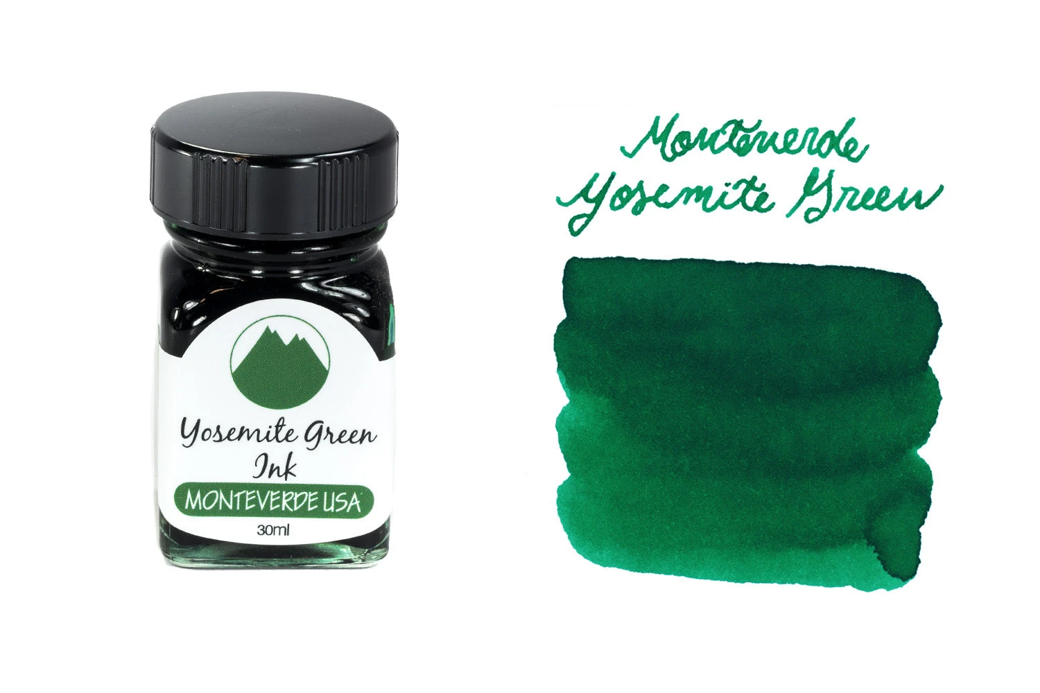30ml glass bottle of Monteverde Yosemite Green fountain pen ink.