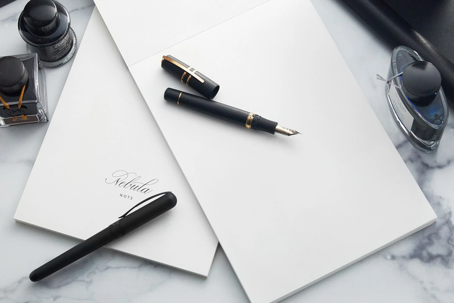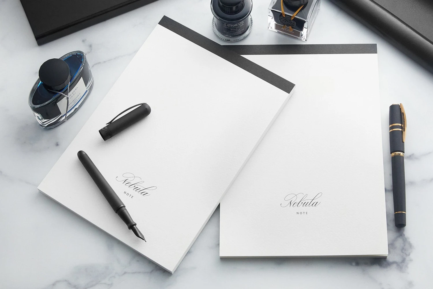 This tablet features 100 sheets of white 52gsm fountain pen friendly blank Tomoe River paper and measures 182mm wide by 257mm tall.