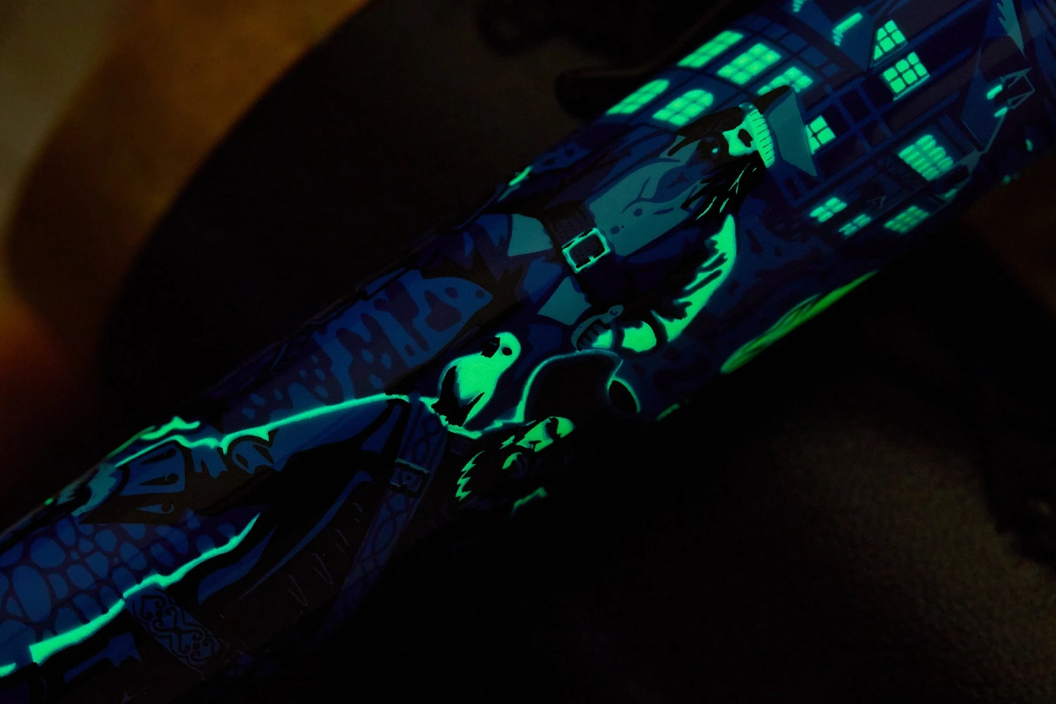 Take a break from buckling swashes & shivering timbers and drink up, me hearties – because the Pirate Party Retro 51 Tornado Rollerball pen has docked at The Goulet Pen Company! This glow-in-the-dark pen features some of the most detailed artwork we’ve seen yet! From the cobblestones to the moonlit masts, this pen is captivating from every angle. So grab your grog and have fun cataloguing all of your adventures with this smooth and reliable rollerball that’s always ready to set sail!