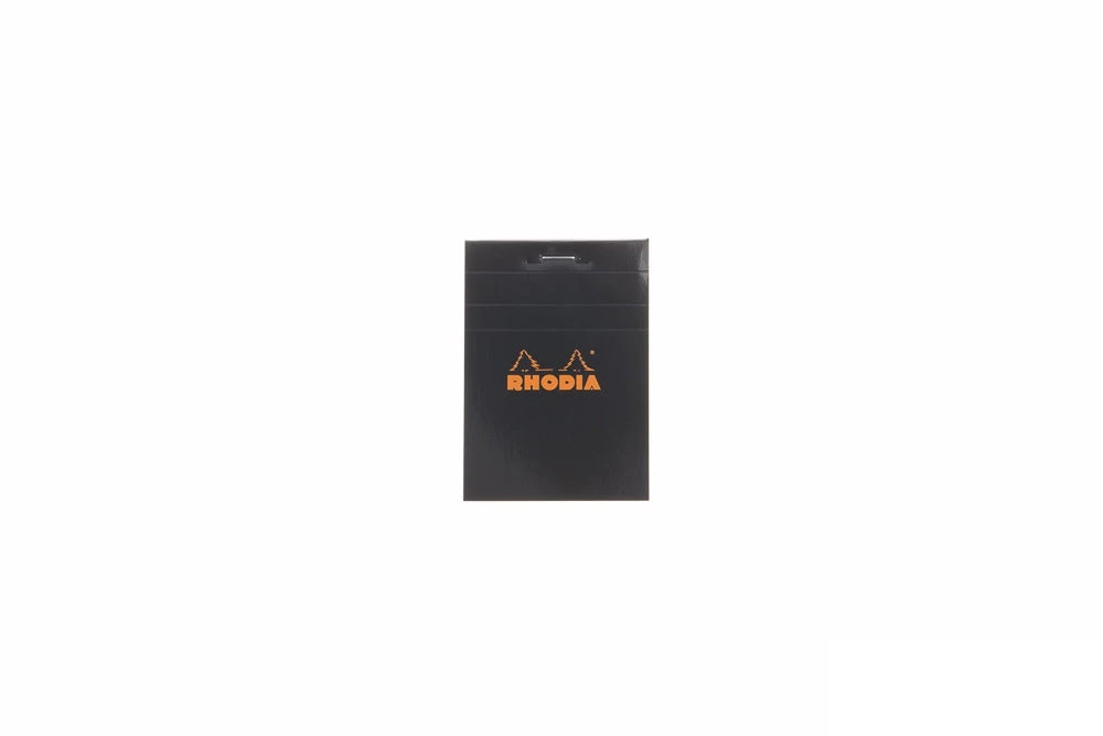 This small black Rhodia notepad features 80 sheets of extra white 80g acid-free, pH neutral graph paper. Each sheet is microperforated at the top for easy and clean removal. The top stapled cover folds back cleanly, and there is a hard cardboard back for writing support. These economical pads are a favorite of artists, designers, writers, and notebook fans for notes, sketching, and hand drafting. People love them for their grids, smooth paper, and iconic cover.
