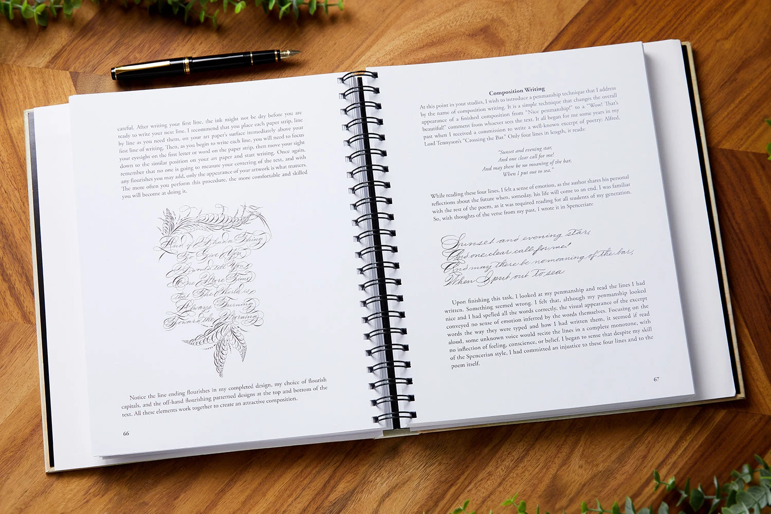 - Methods of bird and quill designs, filigree patterns, and composition flourishing