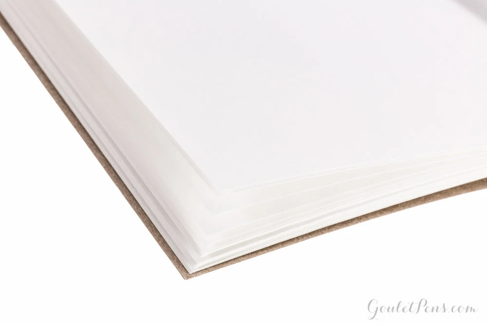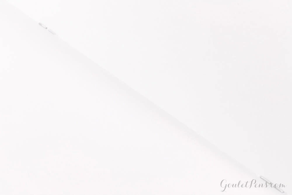 This refill for the regular size Traveler’s Notebook measures 11cm x 21cm (approximately 4.33in x 8.25in), and contains 32 sheets (64 pages) of white fountain pen friendly blank Midori MD paper.
